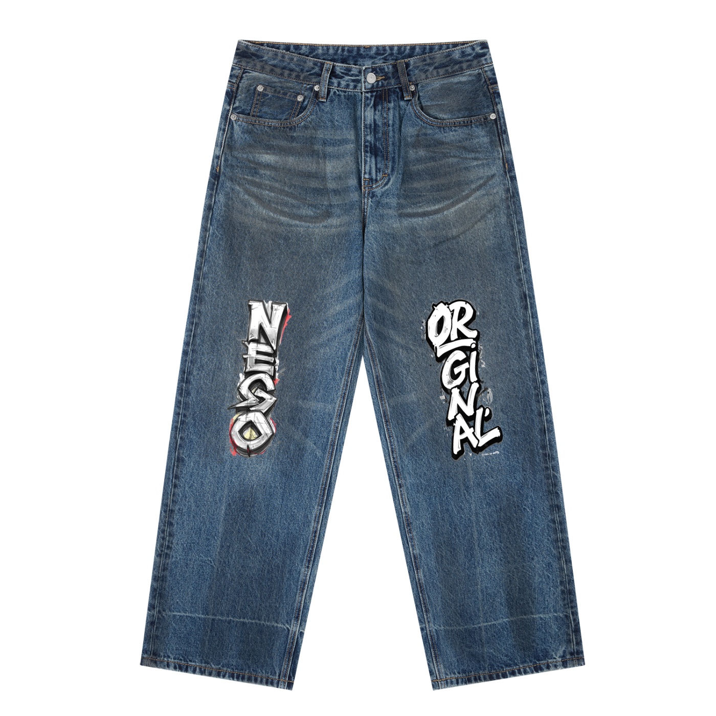 Vintage Wash Baggy Denim Jeans Negro original by ETIK