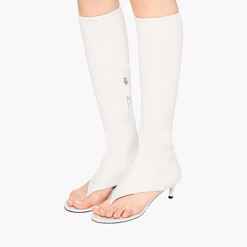 Women’s New Fashion Fish Mouth Clip Toe Mid Tube Cool Boot, Thin High Heel Side Zipper Women’s Large High Tube Boots